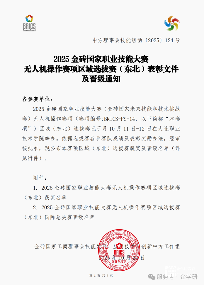 2025金磚國家職業技能大賽無人機操作賽項區域選拔賽(東北)表彰文件及晉級通知
